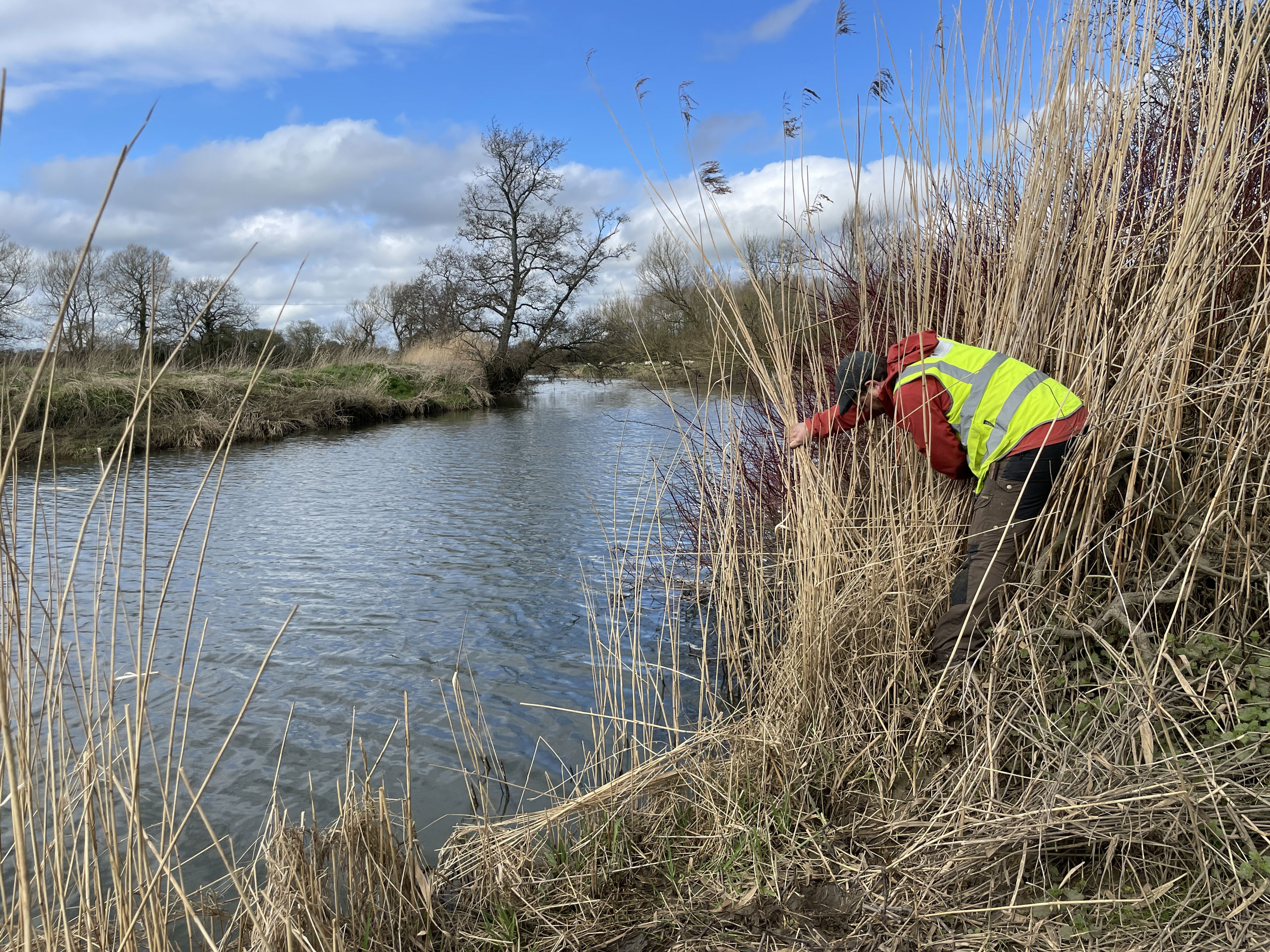 - Float surveys – Floats formed of buoyant material anchored to the river bank. This creates artificial platforms that may encourage water voles to latrine where there aren’t many natural features suitable for territory-marking behaviour, making it easier to prove their presence. We check these floats several times over three weeks.